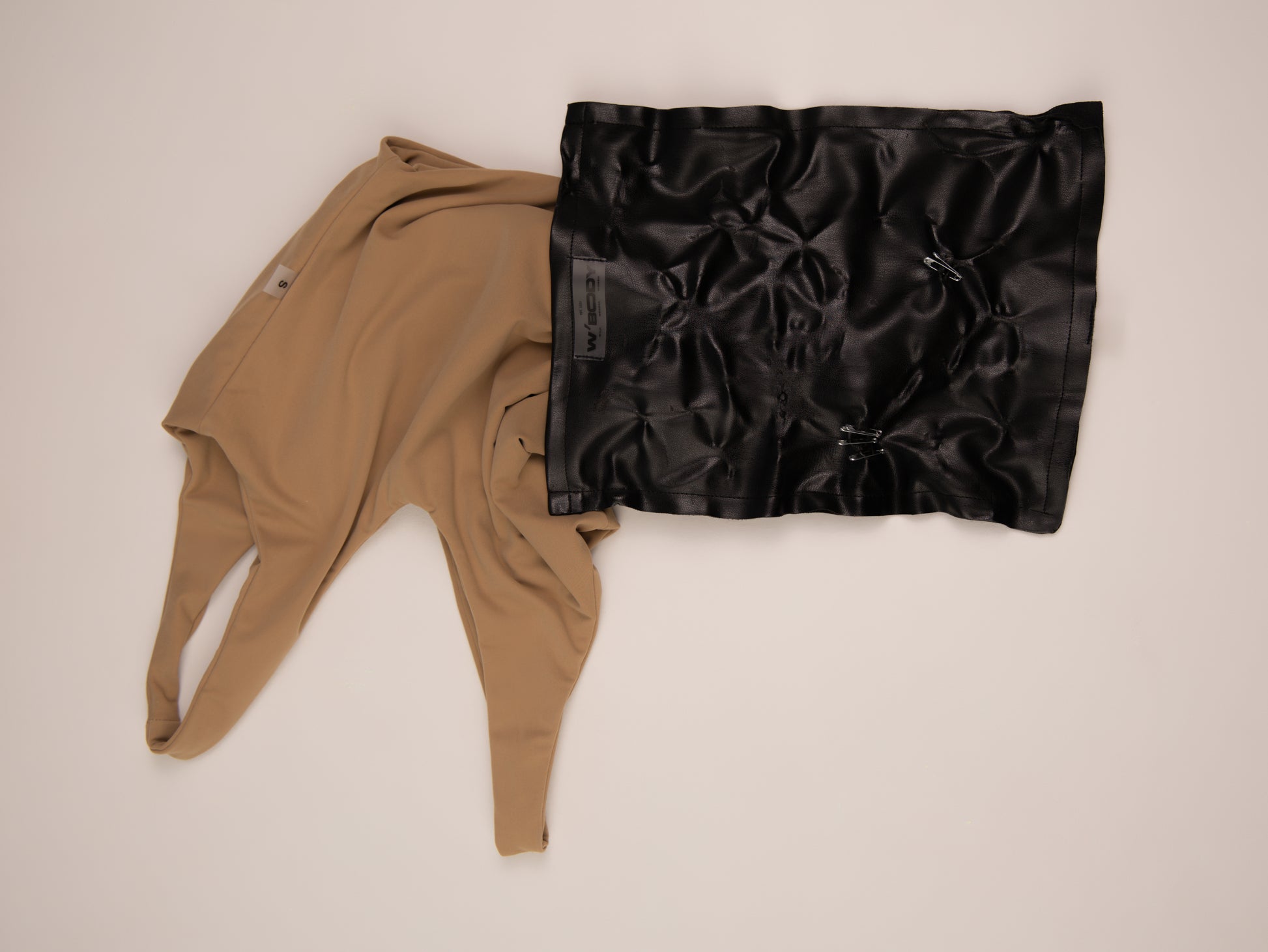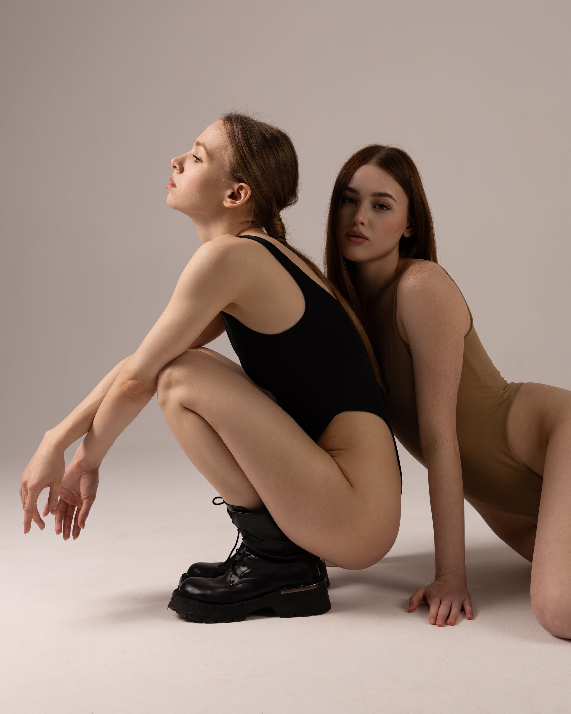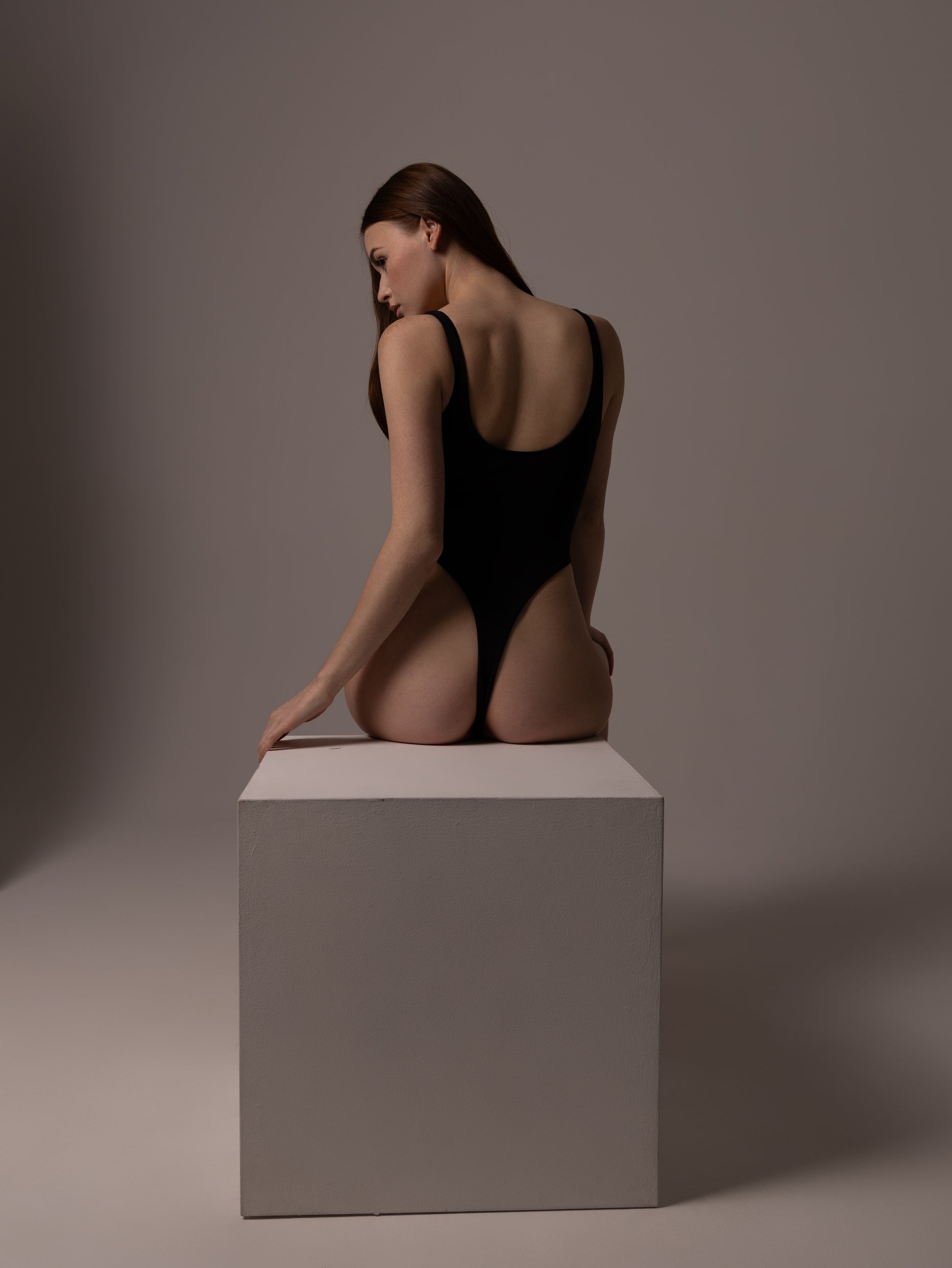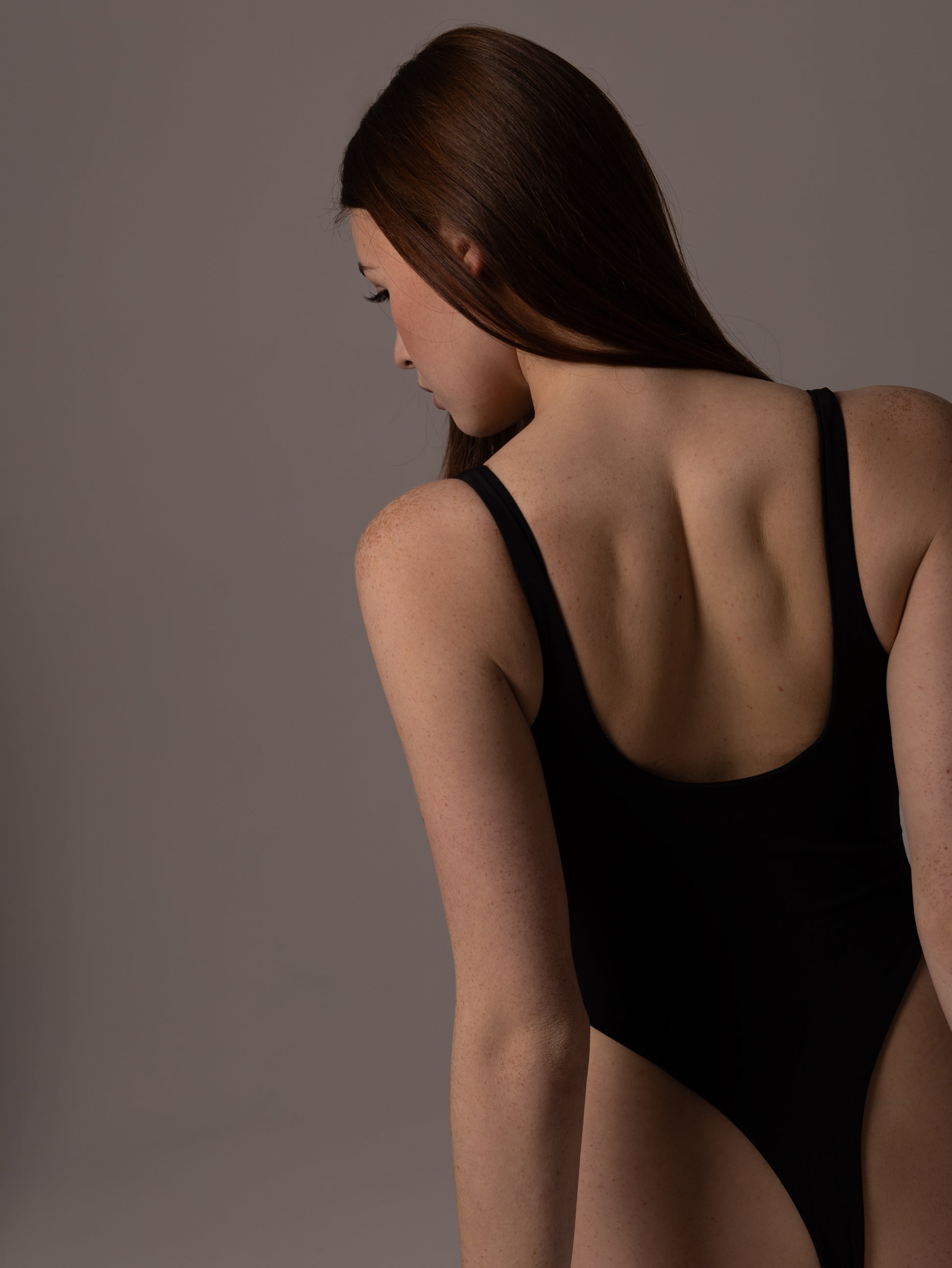 It has no pressing or cutting elements, sits perfectly on the body, and we also do not use any fasteners in the bikini area, since the bodysuit is worn without panties.