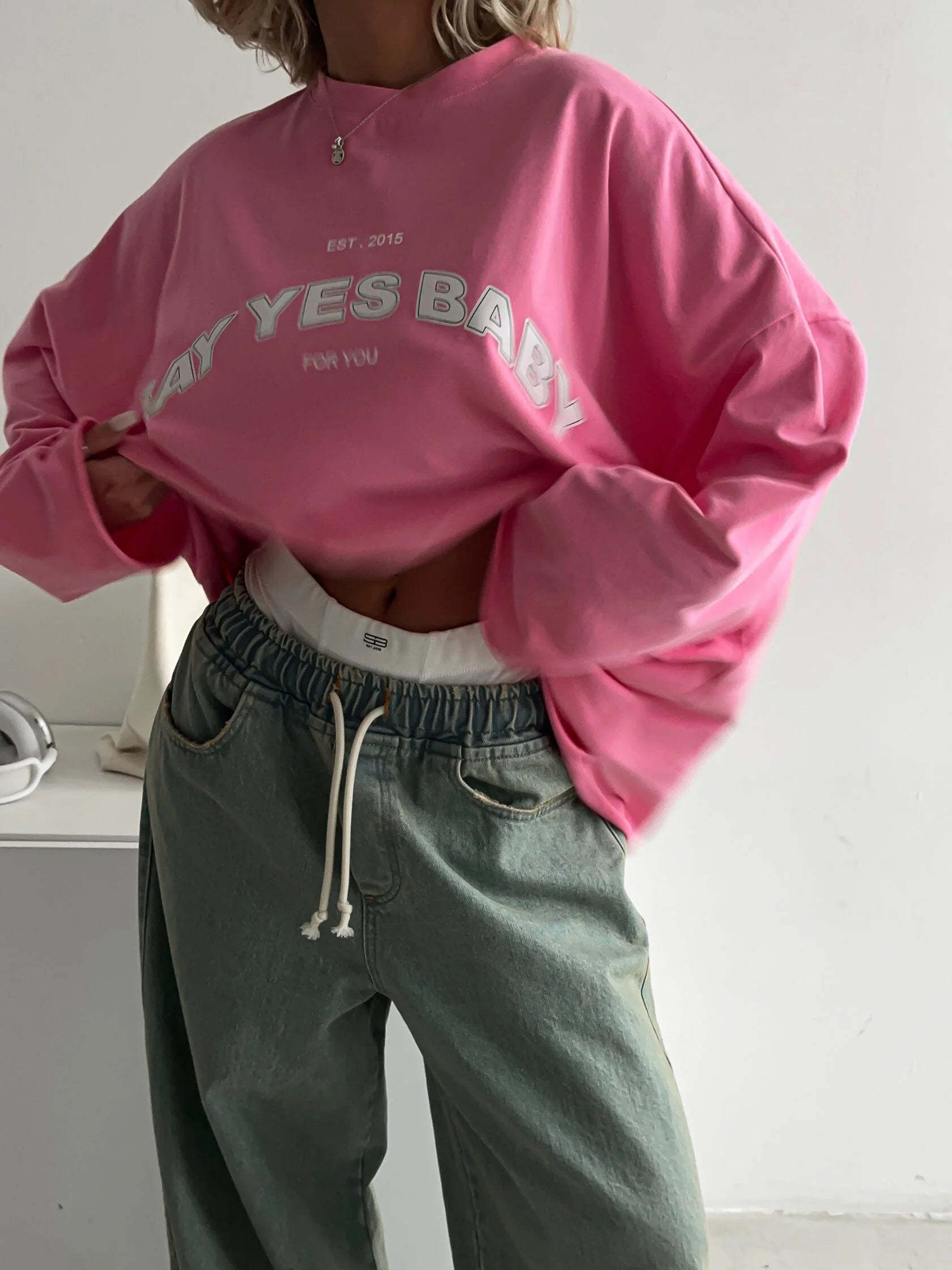 Women's long sleeve top in the signature Barbie shade with a print on the chest in the form of the brand logo.