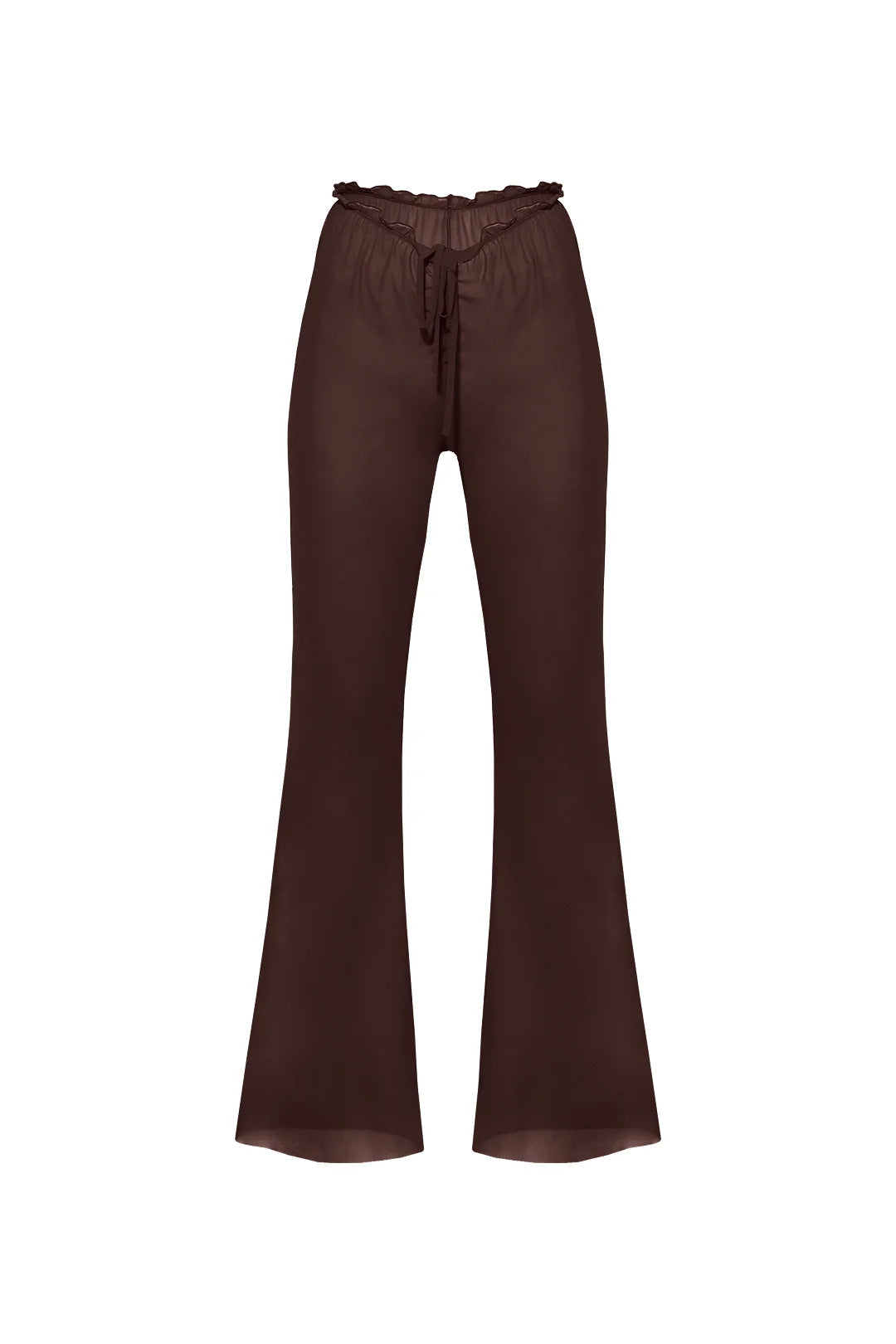 Loose-fitting trousers with lacing for adjusting the fit and waistline.