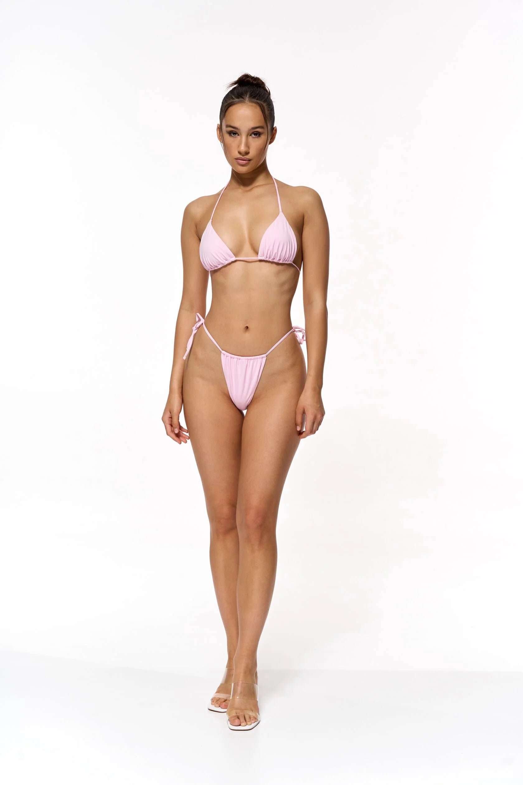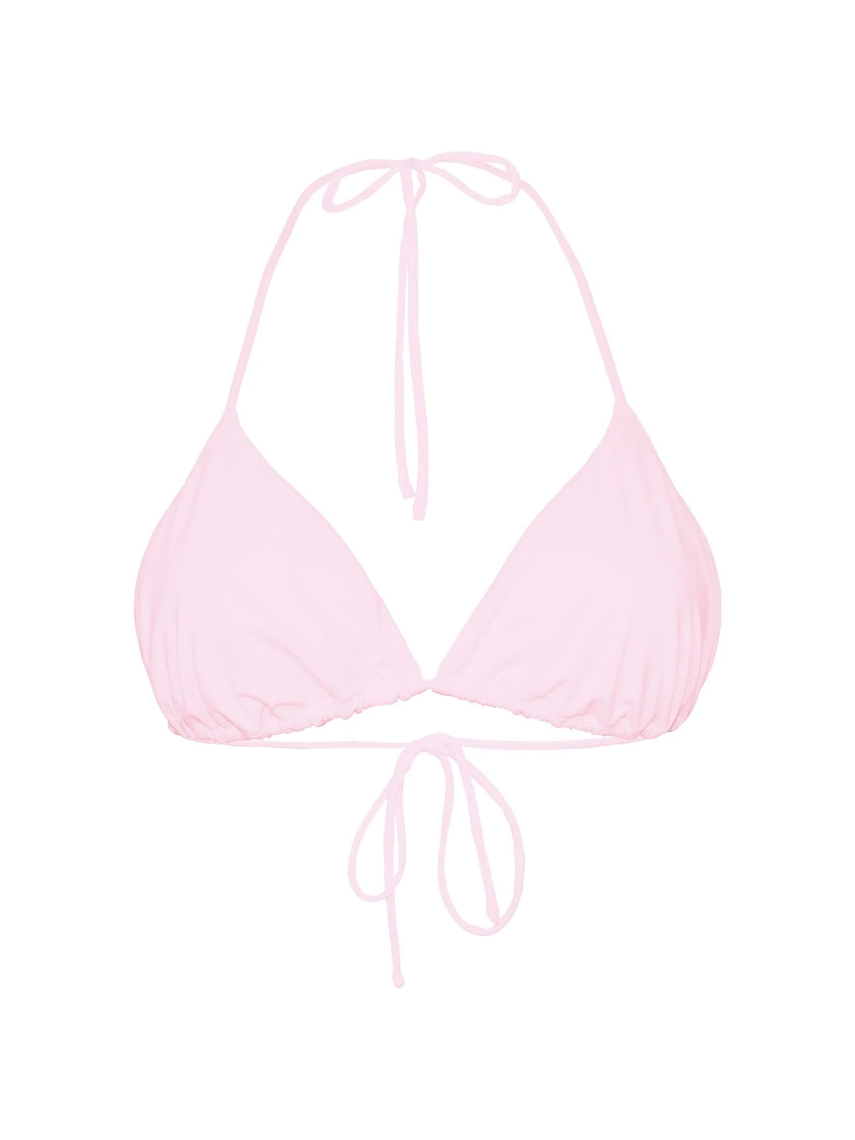 A bra with triangle cups made of soft and velvety biflex and ties to create unique looks.