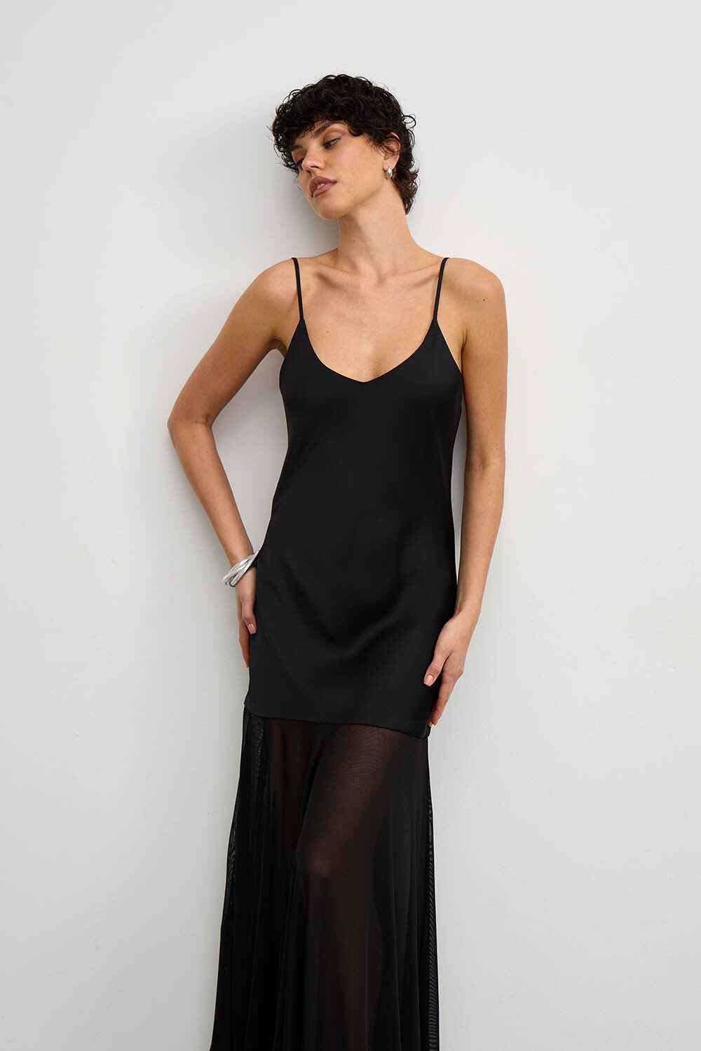 SATIN DRESS WITH MESH