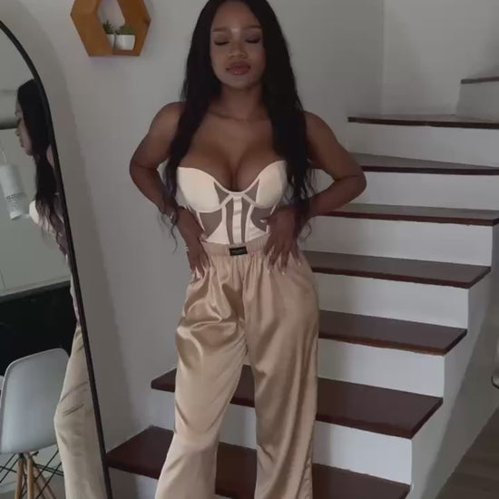 These silk trousers are the epitome of comfort and refined elegance. The lightweight, flowing fabric gently drapes over the body, creating a barely-there feel. Perfect for both relaxed days and elevated evening looks. Featuring an elastic waistband and relaxed fit for ultimate comfort and effortless style.