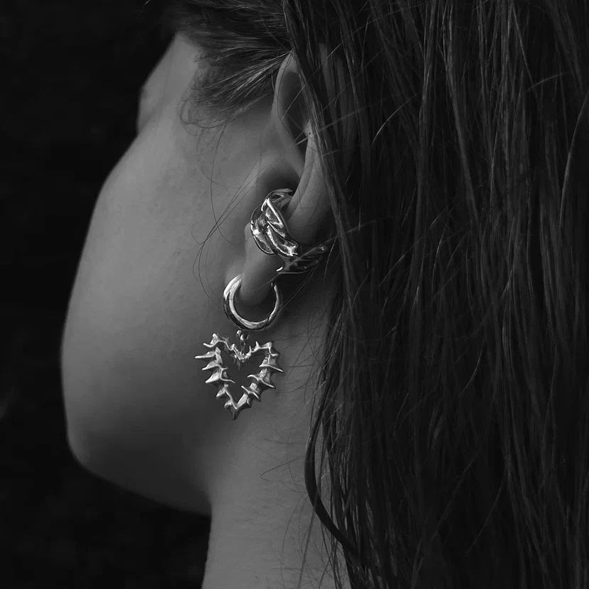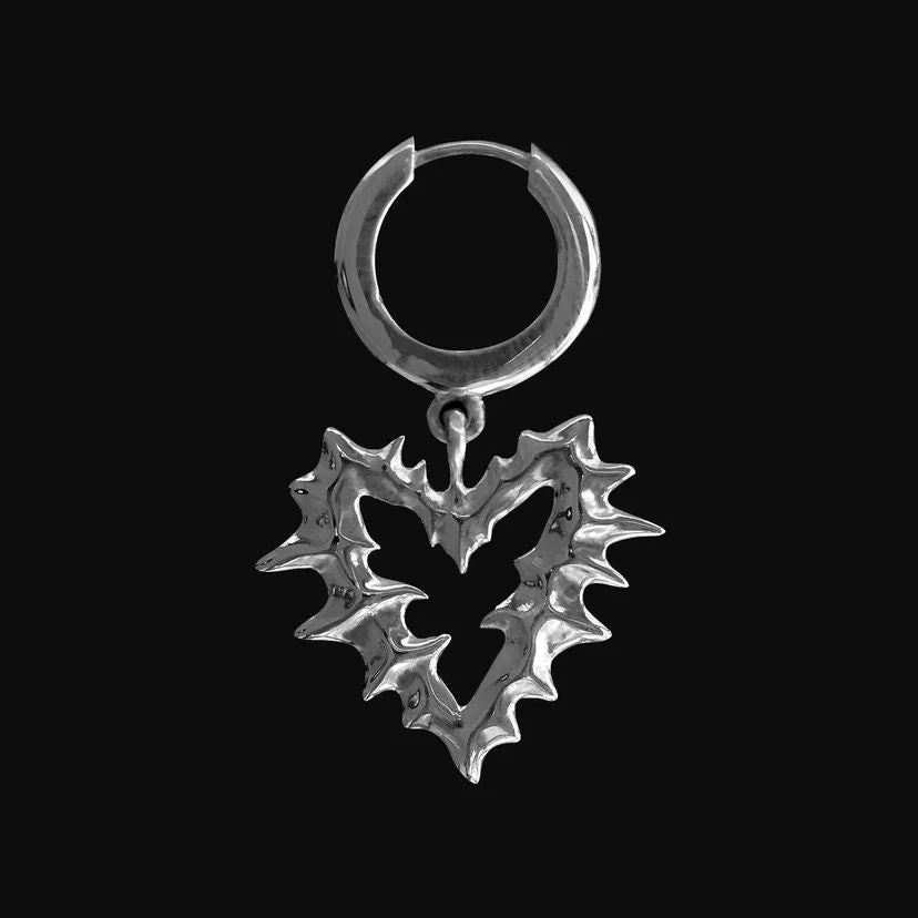 Thornbound earring - heart guarded by thorns - a symbol of strength, individuality, and sacred boundaries. Crafted as a talisman to protect your essence and honor your untamed self.