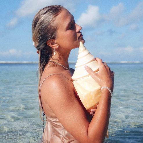 A luminous natural cross-pearl in a bright, creamy tone hangs from a sleek 925 silver hoop — organic, sculptural, and full of character. Each pearl is one of a kind, making every piece feel uniquely yours.